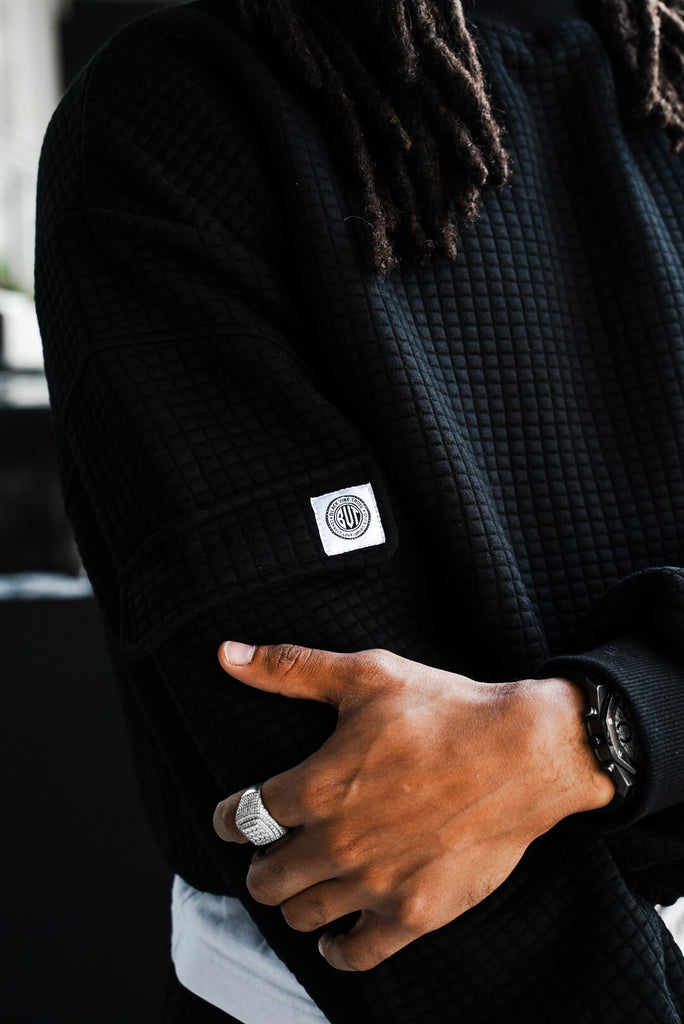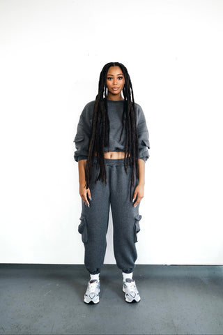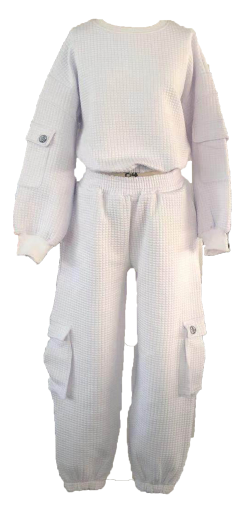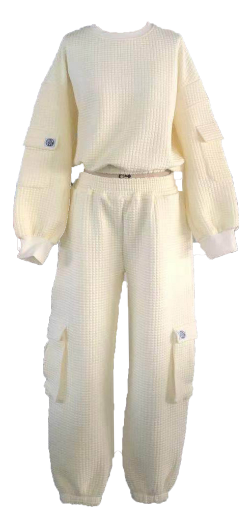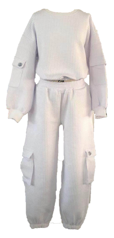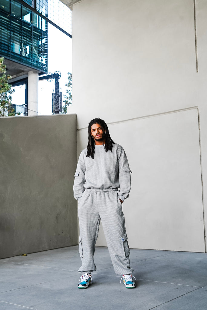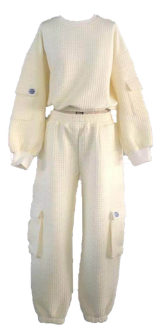 This unisex essential is the epitome of having both comfort and quality; featuring a quilted, waffle print pattern, minimalistic branding, cropped styling, and designed with a standard of superiority - this set will easily become your favorite "go to" two piece. [Pants do not have a drawstring.]
